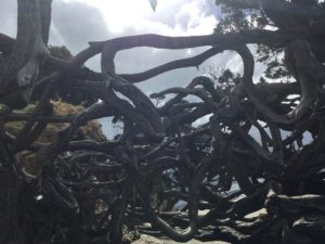 なぜ?と思う幹のような根のような… しかし先の葉は青々してます。