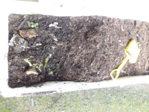 それはともかく、10日分の生ごみとそろそろ終わりを向かえたナスの葉や枝を混ぜ生ごみ再生第二段を始めました。といっても秋まっさかりのオークランド。土として使えるのには時間がかかりそうです。ちなみに今回は野菜くずが全体を占め、肉や魚からでた残飯はほとんど入ってません。 臭いなし。